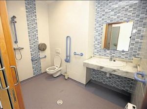 - Duchas sin borde de entrada, con pendiente de desagüe del 2% y sumideros con agujeros inferiores a 2 cm.